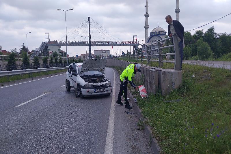 Mehmet Bolat (47) yönetimindeki 57 AU 856 plakalı otomobil, Samsun-Sinop kara yolu İshaklı Mahallesi'nde kaldırıma çıkarak bariyere çarptı.