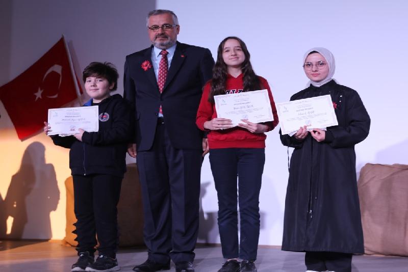 Program, hürmet duruşu ve İstiklal Marşı'nın okunmasıyla başladı. Şiir, fotoğraf ve kompozisyon yarışında dereceye giren öğrencilere ödül takdim edildi.