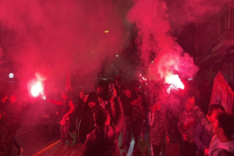 Çiftlik Caddesi'nde meşaleler yakan taraftarlar, müzikler ve marşlar söyledi.