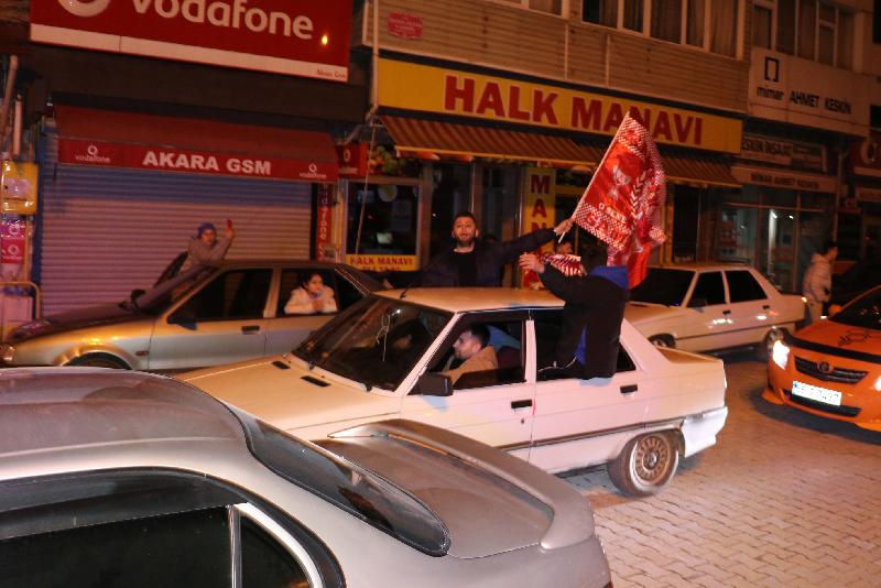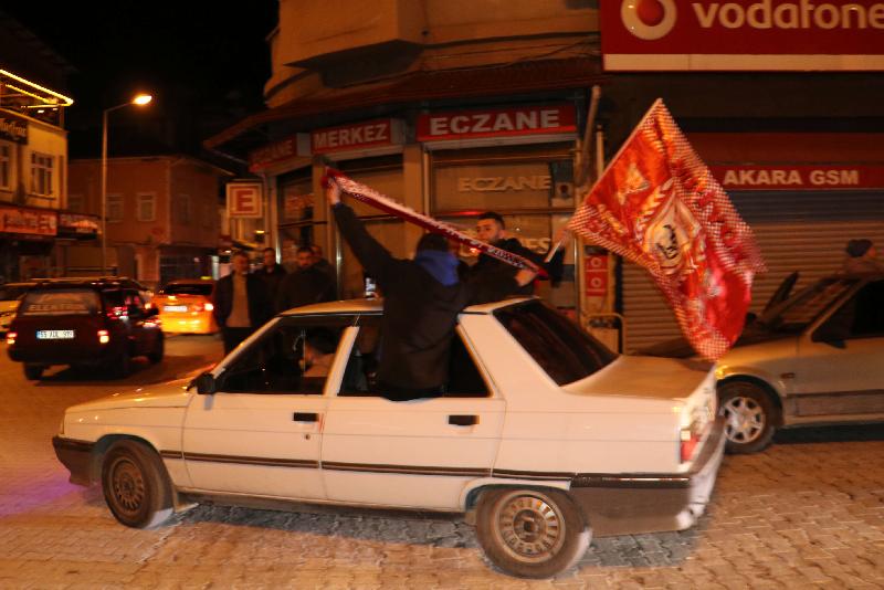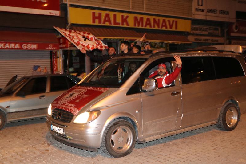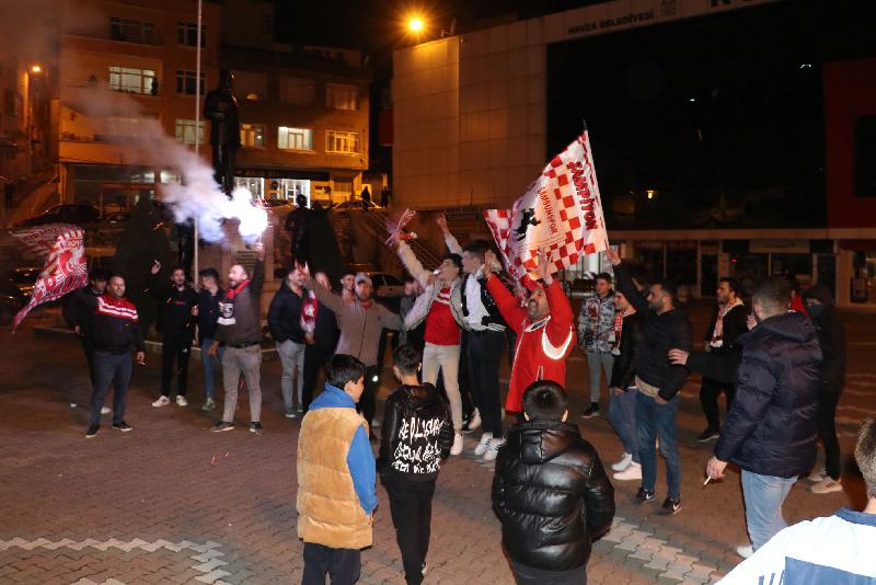 Konvoy düzenleyen taraftarlar, daha sonra kırmızı-beyaz bayraklarla ve meşalelerle Mehmetçik Meydanı'nda Üstün Lig'e çıkmayı kutladı.