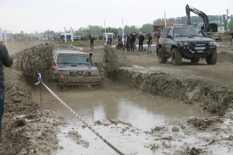 Start alanından hareket eden yarışçılar çamurlu parkurda ilerleyerek zorlu arazi koşullarını aşmaya çalıştı.