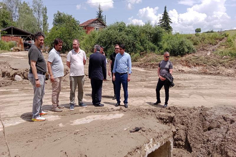 DSİ 7. Bölge Müdür Yardımcısı Ahmet Serdar Güzel, Vezirköprü Kaymakamı Halid Yıldız ve Vezirköprü Ziraat Odası Başkanı Aslan Kaya, selden etkilenen Esentepe, Çakırtaş ve Çal mahallelerinde incelemede bulundu.