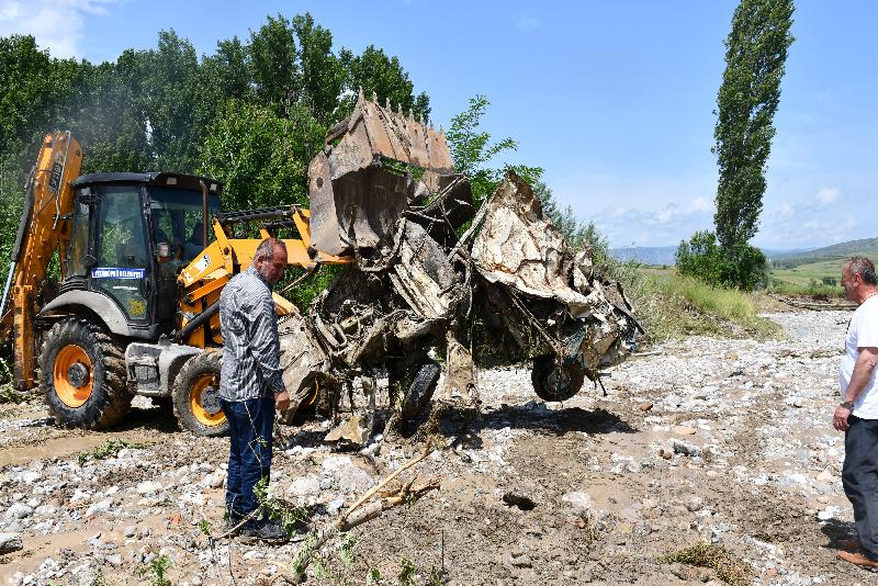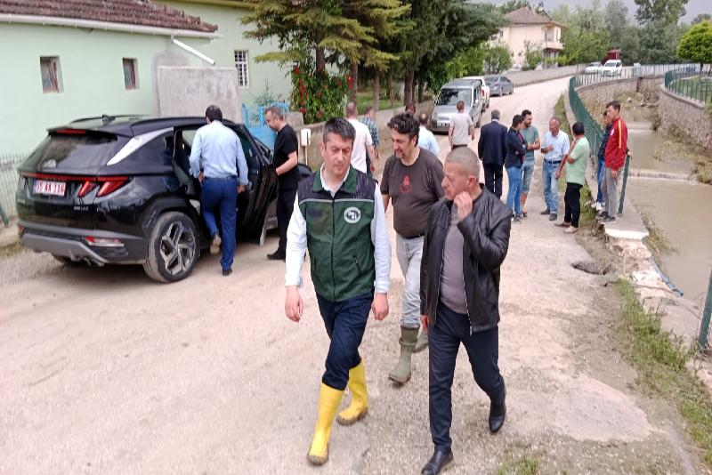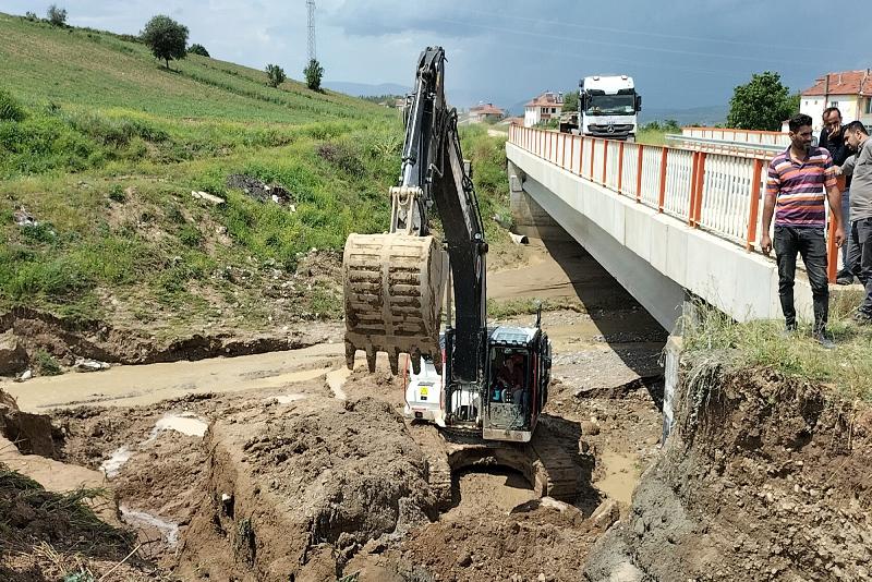İlçede dün akşam saatlerinde başlayan sağanak kısa sürede sele neden olmuş, ekili alanların yanı sıra köprü ve menfezler zarar görmüştü.