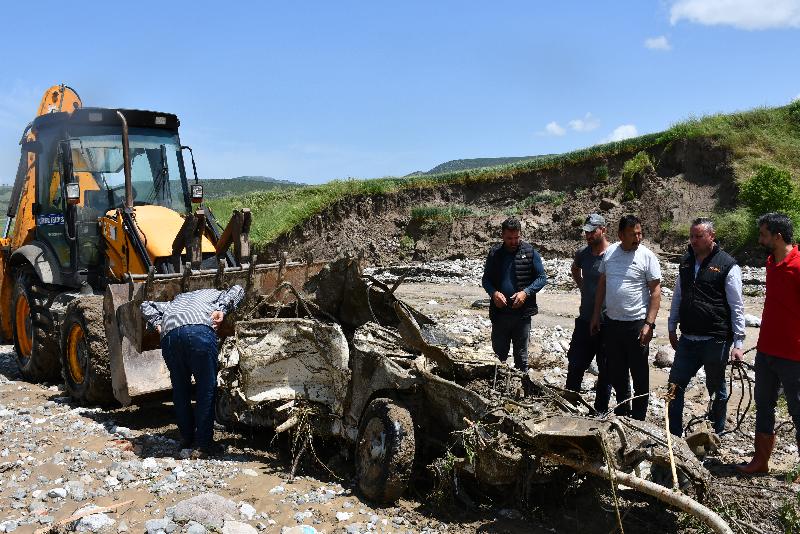 Çakırtaş Mahallesi'nde sel sularına kapılan ve içinde kimsenin bulunmadığı otomobile ise yaklaşık 4 kilometre uzaklıkta hurdaya dönmüş halde ulaşıldı.