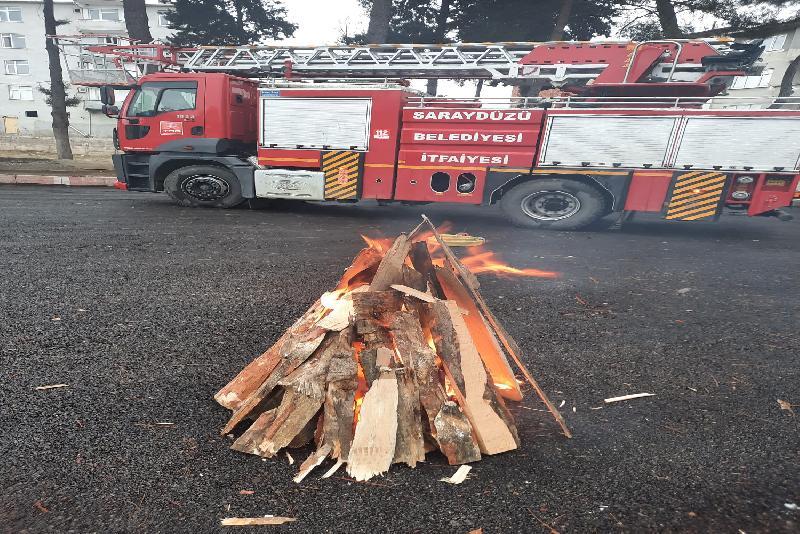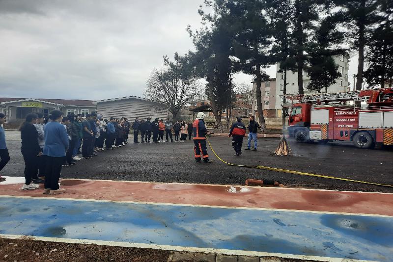 Saraydüzü Belediyesi İtfaiye Müdürlüğünce Mehmet Akif Ersoy Anadolu Lisesi'nde gerçekleştirilen tatbikatta, denetimli formda yakılan eşyalar öğrenciler ve itfaiye takımlarınca müdahale edilerek söndürüldü.