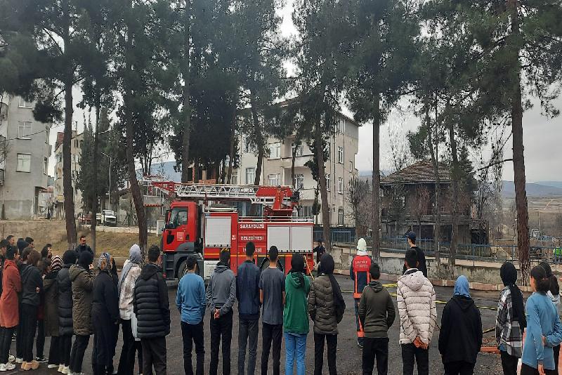 Ardından takımlarca öğrencilere mümkün yangında nasıl müdahale edileceği ve nelere dikkat edilmesi gerektiği hakkında bilgilendirme yapıldı.