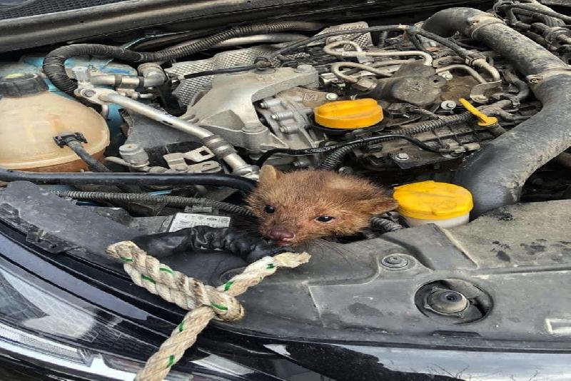 SİNOP – 67aydinhaber – Sinop'ta bir aracın motor kısmına girerek sıkışan sansar, itfaiye takımlarınca çıkarıldı.
