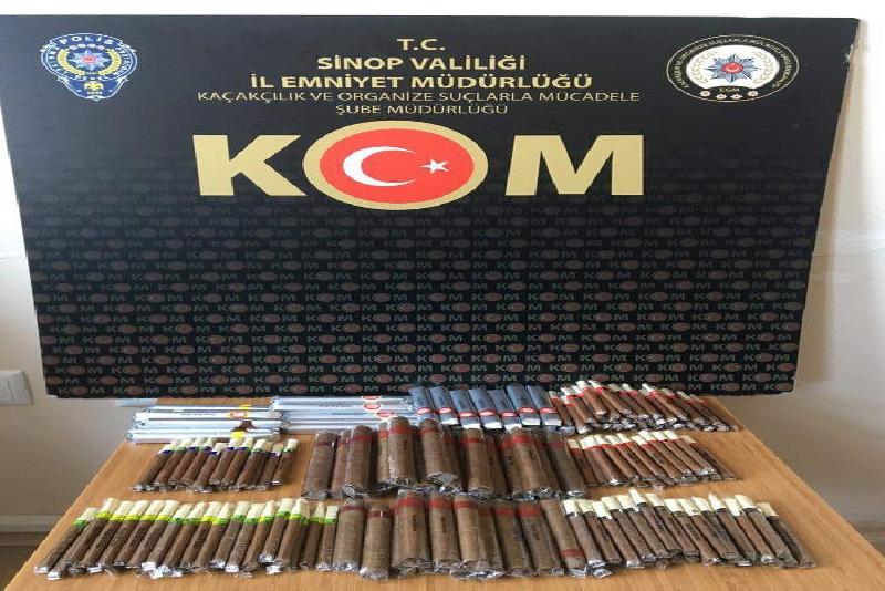 İl Emniyet Müdürlüğü Kaçakçılık ve Organize Kabahatlerle Çaba Şubesi gruplarınca kent merkezinde durdurulan bir motosikletin sepetindeki aramalarda 15 litre kaçak alkol ele geçirildi. Türkeli ilçesinde bir iş yerinde yapılan aramalarda ise 181 bandrolsüz puro yakalandı.