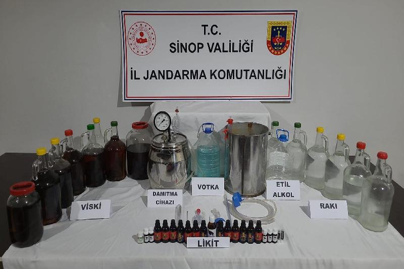 Jandarma gruplarınca Durağan ilçesinde bir adrese düzenlenen operasyonda ise 85 litre kaçak alkol ele geçirildi.