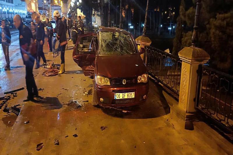 Muhammet Tunç'un (19) kullandığı 06 DF 8357 plakalı araba, Yenimahalle Hürriyet Caddesi'nde şoförünün direksiyon hakimiyetini kaybetmesiyle evvel refüje akabinde park halindeki arabaya çarptı.