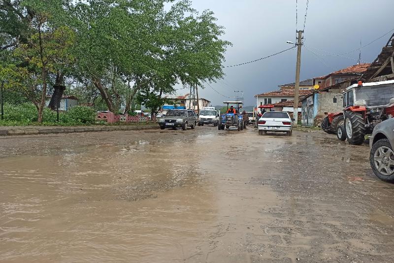 İlçede başlayan sağanak nedeniyle cadde, sokak ve tarım arazilerinde su birikintileri oluştu. Bazı vatandaşlar dükkanlara ve binaların saçaklarının altına sığınarak yağmurun dinmesini bekledi.
