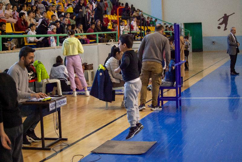 Gençlik ve Spor Bakanlığı ile Ulusal Eğitim Bakanlığının ortaklaşa hayata geçirdiği proje kapsamında ilçedeki öğrenciler, Mahmut Atalay Spor Salonu'nda çeşitli testlere tabi tutuluyor.