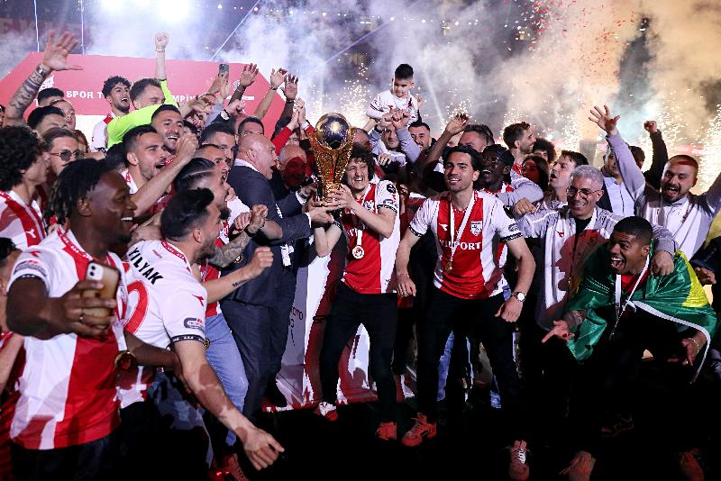 Kırmızı-beyazlı futbolcular, daha sonra takım halinde kupayı kaldırarak büyük sevinç yaşadı. Futbolcular töreninin ardından kupayla tribündeki taraftarları selamladı.