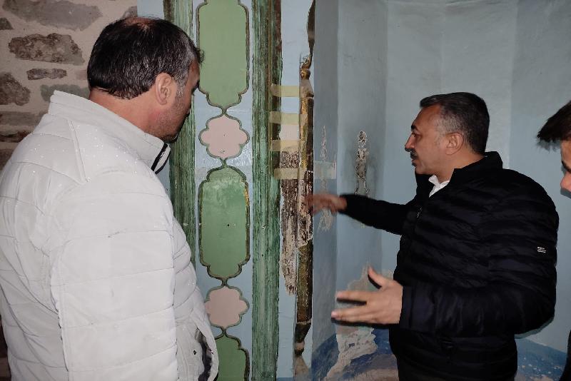 Vakıflar Genel Müdürlüğü Ankara Bölge Müdürü Ferhat Türkoğlu, onarım süreçleri süren ibadethanede incelemelerde bulundu.