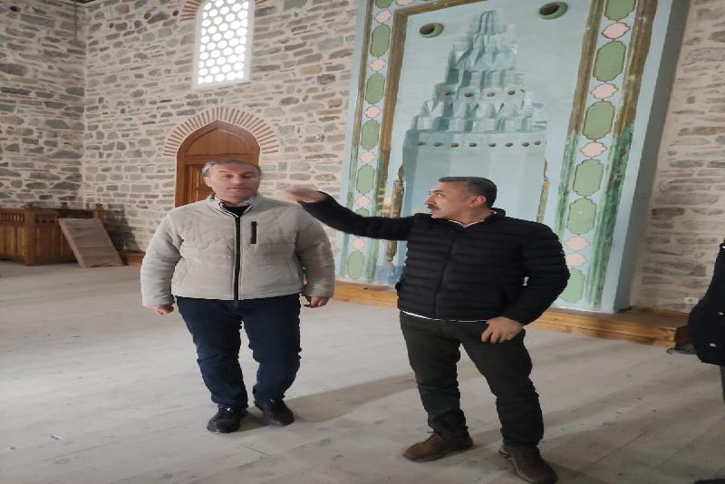 Mudurnu Belediye Lideri Necdet Türker'in de eşlik ettiği incelemede, 1546'da Yasal Sultan Süleyman'ın buyruğuyla ahşap açma tavan ve taş duvar olarak inşa edilen yapıdaki çalışmalar yerinde görüldü.
