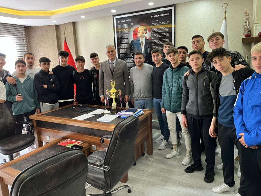 Zonguldak U-18 Liginde İl Şampiyonu olan Zonguldak Ereğli Spor (ZES) şampiyonluk kupası ile Alaplı Belediye Başkanı Nuri Tekin ve Ereğli İlçe Milli Eğitim Müdürü Harun Akgül’ü ziyaret ettiler.