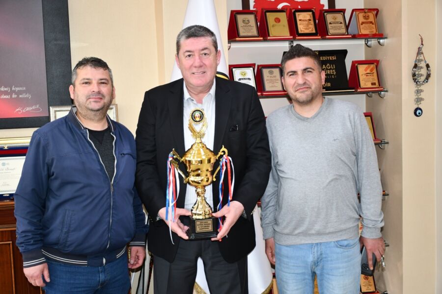 Zonguldak U-18 Liginde İl Şampiyonu olan Zonguldak Ereğli Spor (ZES) şampiyonluk kupası ile Alaplı Belediye Başkanı Nuri Tekin ve Ereğli İlçe Milli Eğitim Müdürü Harun Akgül’ü ziyaret ettiler.