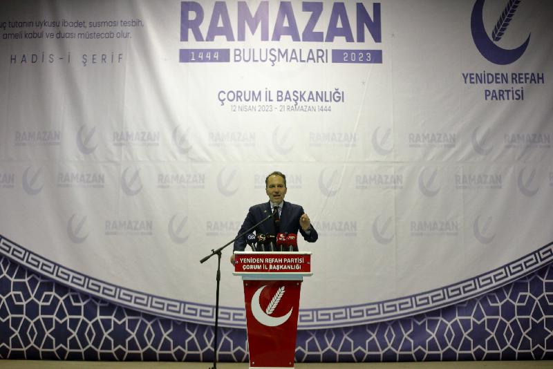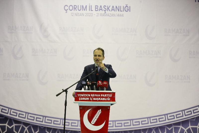 ÇORUM – 67aydinhaber – Yine Refah Partisi Genel Lideri Fatih Erbakan, “Nasıl bir ittifakla karşı karşıya olduğumuzu görüyorsunuz. Bunlar 6'lı masa, 7'li masa değil, 6'lı maşa, 7'li maşa haline gelmişlerdir. PKK'nın maşası, FETÖ'nün maşası ve dış güçlerin maşası, LGBT lobilerinin maşası haline gelmişler. Bin sene İslam'a bayraktarlık yapan ecdadın torunları, inancımızla, İslam ile ahlak ve maneviyatla yoğrulmuş bu toprakların insanı, asla ve asla bu yapıya müsaade vermeyecektir.” dedi.