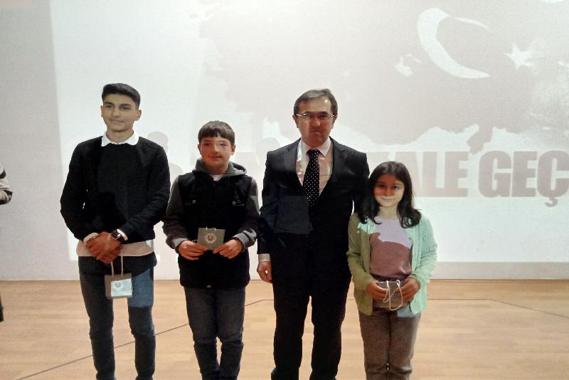 Programda, İlçe Ulusal Eğitim Müdürlüğü tarafından “Destanlaşan Çanakkale Şehitleri ve Destanlaşan Tarihimiz” temalı ilkokullar ortası fotoğraf, ortaokullar ortası şiir ve liseler ortası kompozisyon yarışlarında dereceye giren öğrenciler, mükafatlarını aldı.