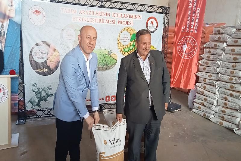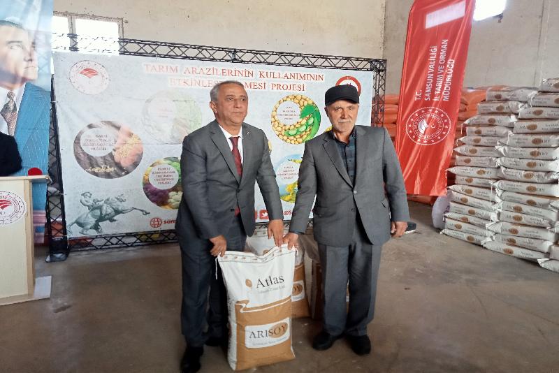 SAMSUN – Tarım ve Orman Bakanlığı Bitkisel Üretim Genel Müdürlüğün tarım arazilerinin kullanımının etkinleştirilmesi programı kapsamında, Terme'de çiftçilere soya tohumu dağıtıldı.
