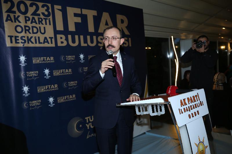 Çeşitli programlara katılmak üzere Ordu'ya gelen Muş, AK Parti Ordu Vilayet Başkanlığı tarafından Altınordu ilçesindeki bir otelde düzenlenen iftar programına katıldı.