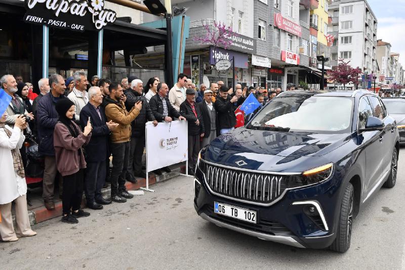 Samsun'dan AK Parti milletvekili adayı olan Muş, 19 Mayıs ilçesine Türkiye'nin arabası Togg'un T10X akıllı aygıtı ile geldi.