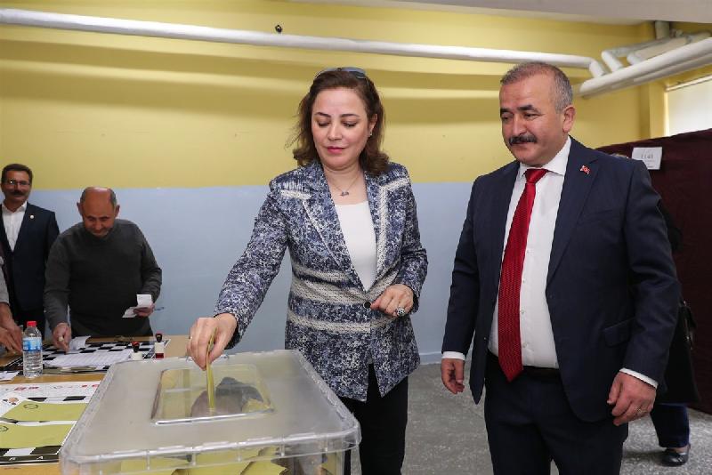 Vali Haipoğlu, oy kullanacağı Melik Ahmet Gazi İlkokulu'na eşi Ayfer Hatipoğlu ile geldi.