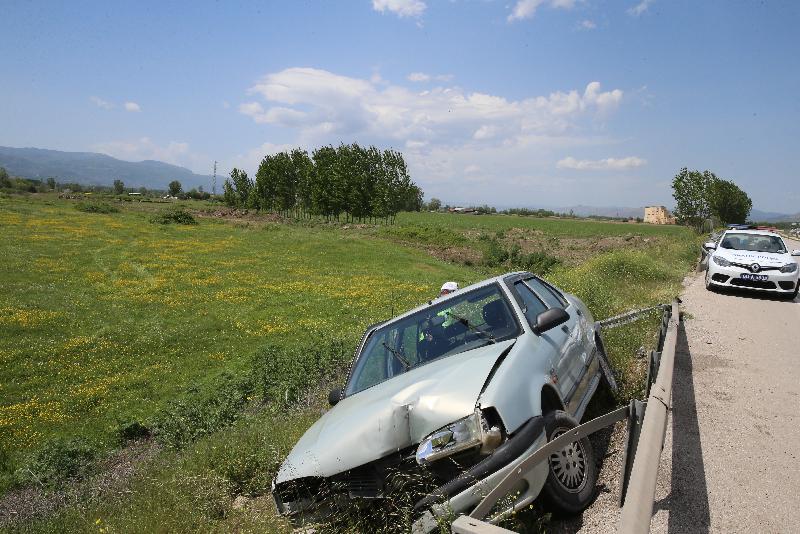 Y.D. (37) idaresindeki 60 KH 777 plakalı otomobil, Tokat-Turhal kara yolu Pazar Kavşağı'nda sürücüsünün direksiyon hakimiyetini kaybetmesi sonucu bariyere çarptı.
