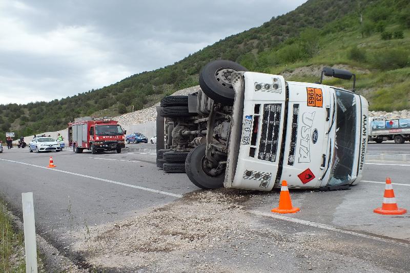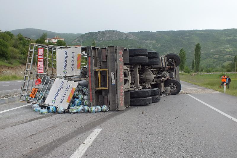 Yusuf Mırık'ın kullandığı 71 EF 622 plakalı tüp yüklü kamyon, Turhal Amasya kara yolu Kuruçay mevkisi yakınlarında devrildi.
