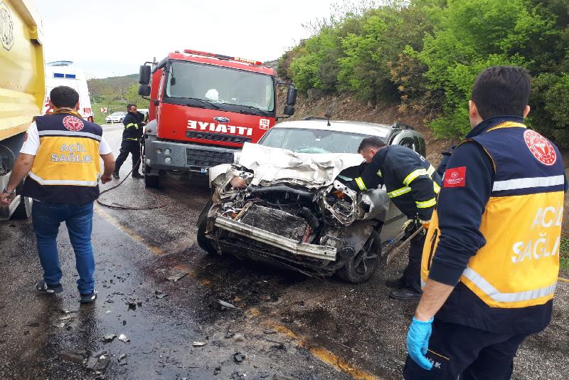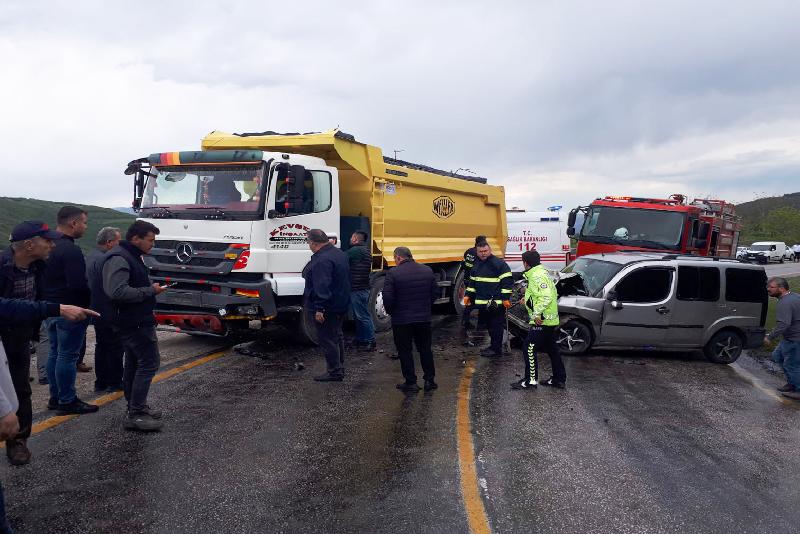 E.B. (49) idaresindeki 34 FCS 52 plakalı hafif ticari araç, Niksar-Akkuş kara yolu Cerköy mevkisinde, M.D. (46) yönetimindeki 06 EV 7093 plakalı kamyonla çarpıştı.
