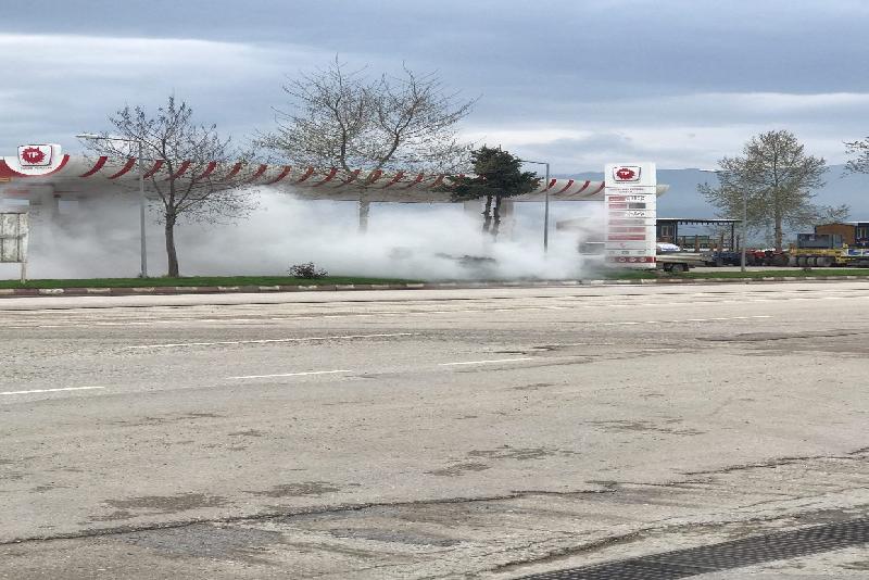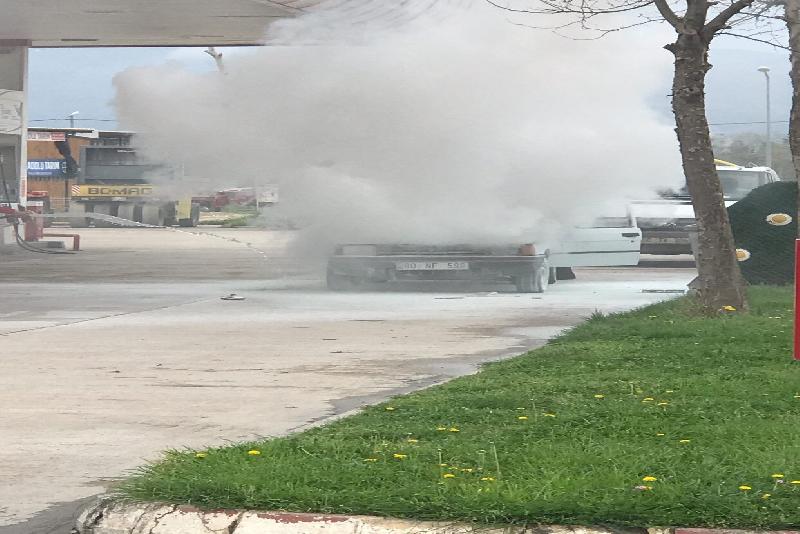 Danişment Gazi Bulvarı üzerindeki petrol istasyonunda Ö.C. ismine kayıtlı 60 NF 598 plakalı araba şimdi belirlenemeyen sebeple alev aldı.