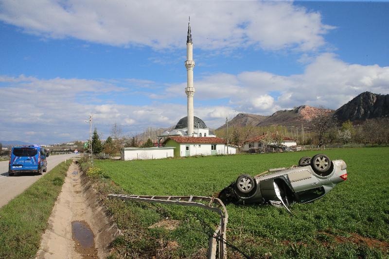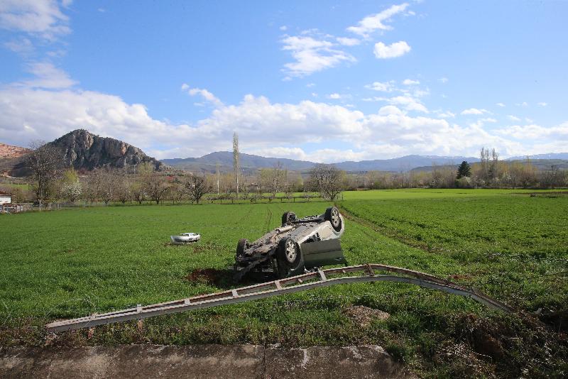 Osman Y. (25) idaresindeki 60 ABK 964 plakalı araba, Tokat Turhal kara yolu Ulaş köyü yakınlarında denetimden çıkarak elektrik direğine çarparak tarlaya devrildi.