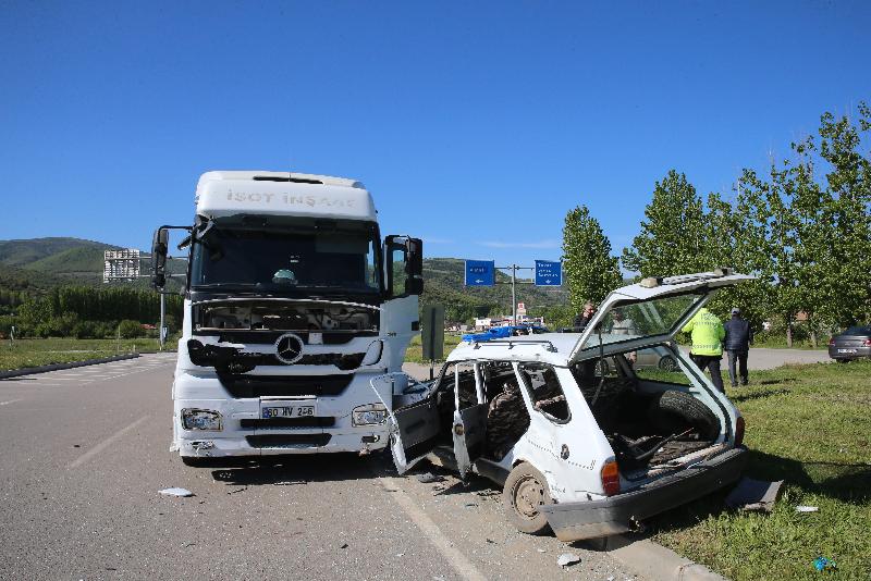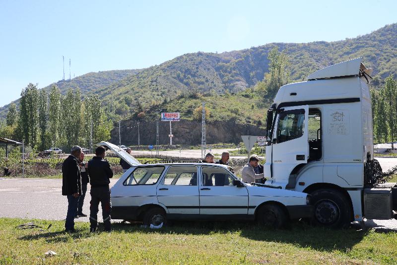 Y.K. (52) idaresindeki 60 HV 246 plakalı tır, Tokat-Niksar kara yolu Almus Kavşağı'nda H.Ç. yönetimindeki 60 SC 478 plakalı otomobille çarpıştı.