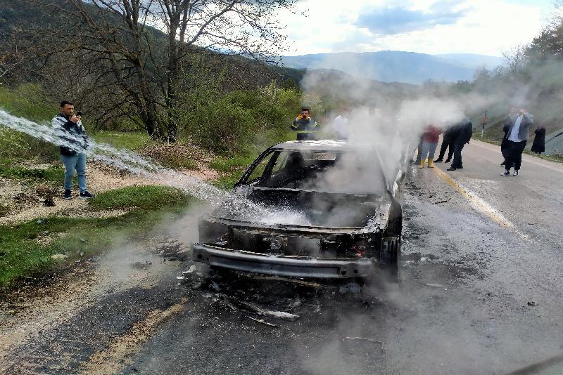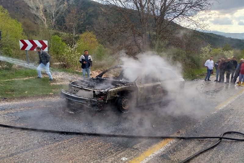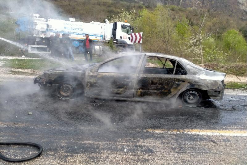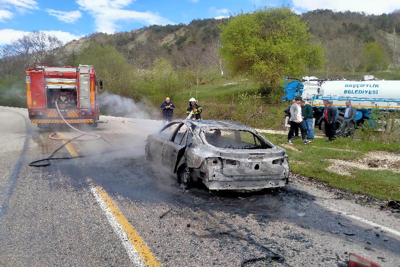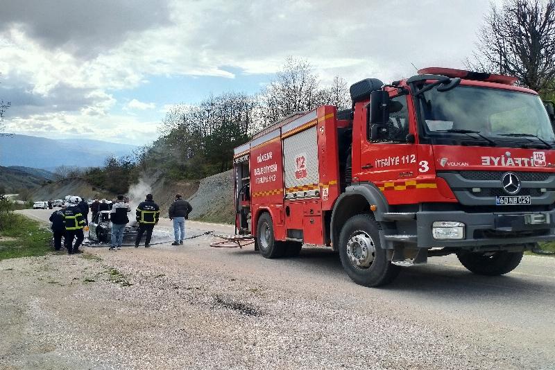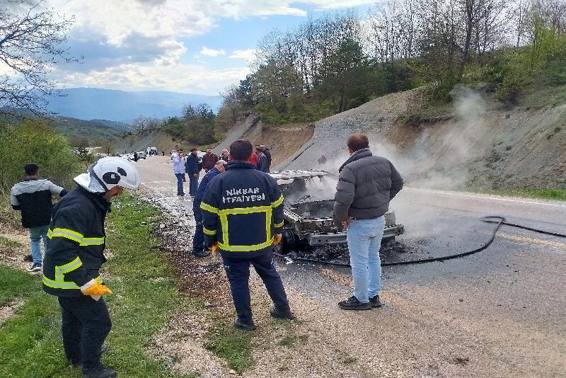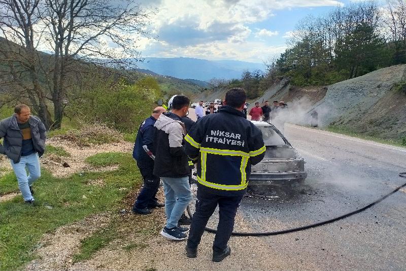 F.K, yönetimindeki otomobilin motor kısmında Niksar-Başçiftlik kara yolu Hanyeri köyü yakınlarında alev çıktığını görünce aracı yol kenarına çekerek itfaiye ekiplerine haber verdi.