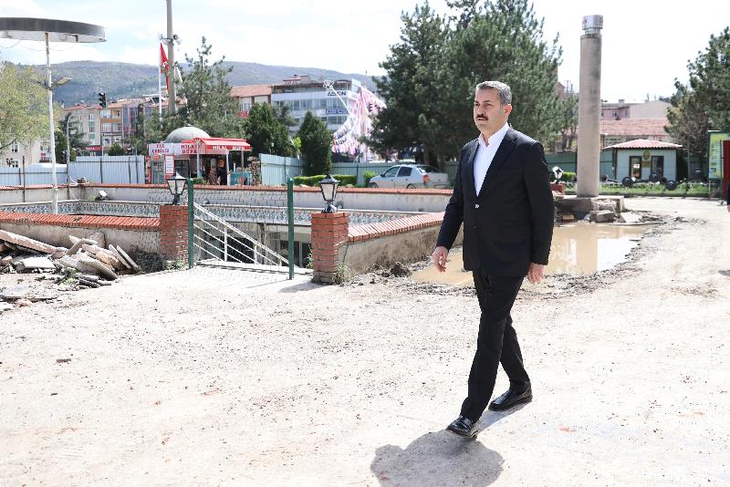 “Değerli hemşehrilerimden gelen taleplerle, kendi müşahedelerimiz ve burada bulunan esnaflarımızdan gelen talepler sonucunda bir proje çalışması başlatmıştık. Geçtiğimiz yılın sonunda proje çalışmamızı bitirerek imal ihalesine çıktık. Birkaç hafta evvel yapılan ihalede, ihaleyi alan firma çalışmalarını yapmaya başladı. Yer altı çarşısının hem yer üstü bölgesinde meydan diye tabir ettiğimiz alanda bir çalışma yapıyoruz, hem de yer altında çarşımızın içinde de çalışmalar yapıyoruz.”