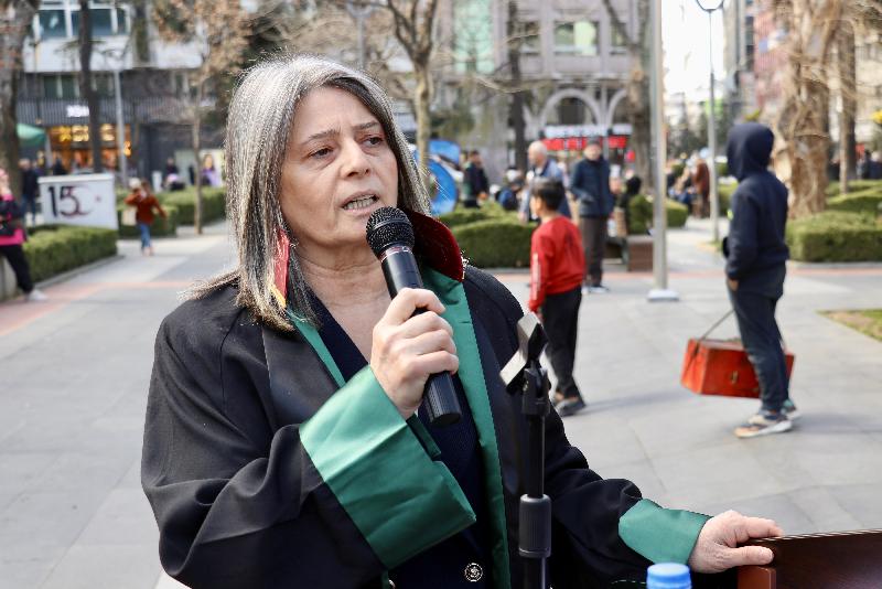 Türkiye Barolar Birliği (TBB) Lider Yardımcısı Avukat Sibel Suiçmez, yaptığı konuşmada, zelzele bölgesindeki bayanların yaşadığı zorluklara dikkati çekerek, birlik ve beraberlik içerisinde olunması gerektiğini söyledi.