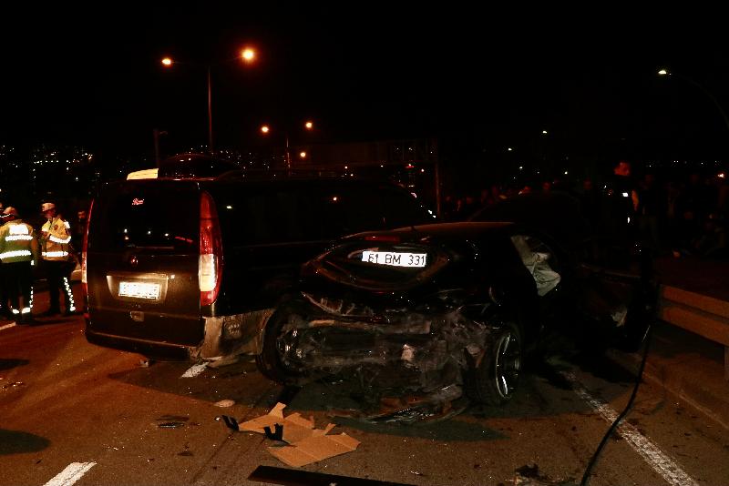 Bariyer ile 61 TZ 025 plakalı minibüsün ortasında sıkışan 61 BM 331 plakalı arabanın şoförü Ersin Süer olay yerinde hayatını kaybetti.