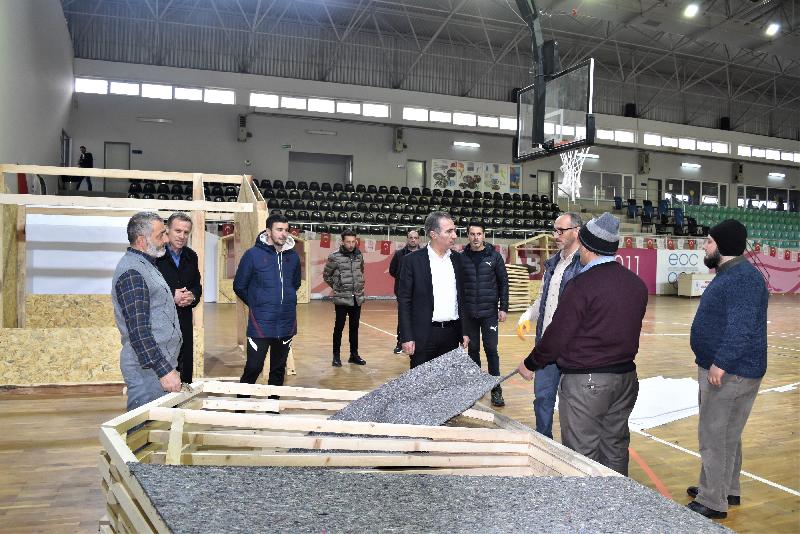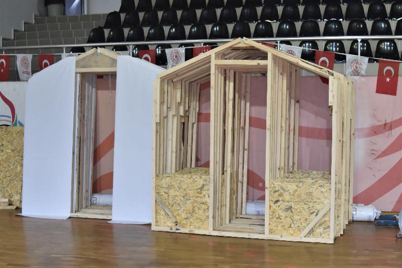 Araklı Spor Salonu'nda üretilen 10 metrekarelik portatif çadırların muhtaçlık duyulan bölgeye gönderileceği vurgulandı.
