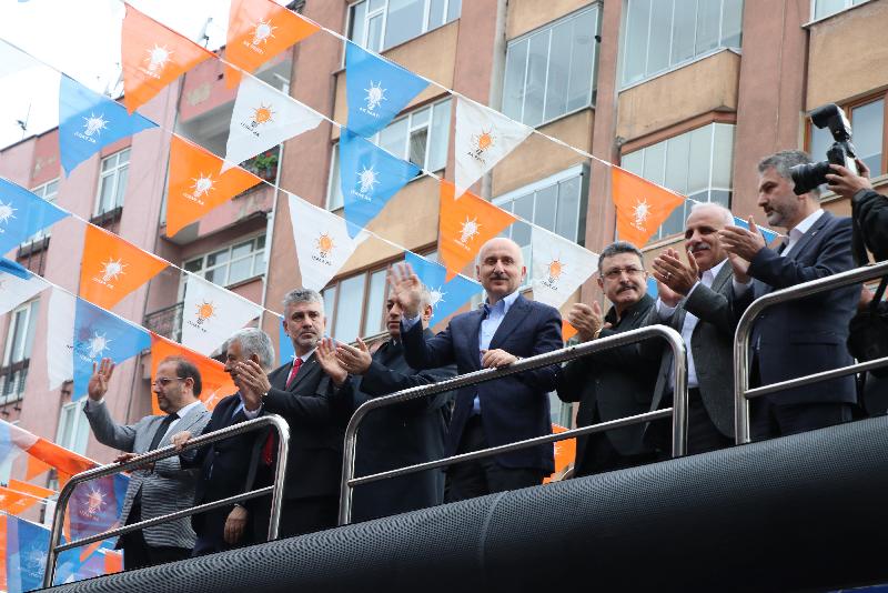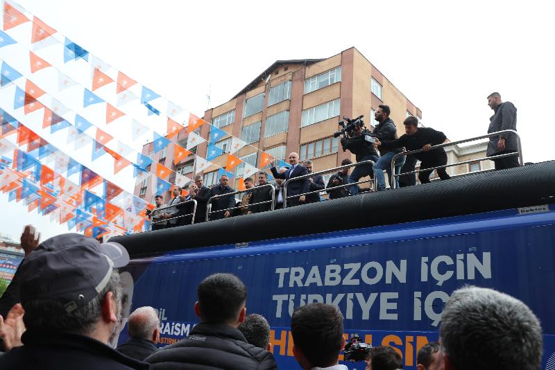 Trabzonlunun liderinin belli olduğunu ifade eden Karaismailoğlu, “Lideri teröristlerle mücadele eden, dünyanın lider ülkesi yapma hedefiyle 21 yıldır milletinin gönlünde taht kuran Recep Tayyip Erdoğan'ı seçecek.” şeklinde konuştu.