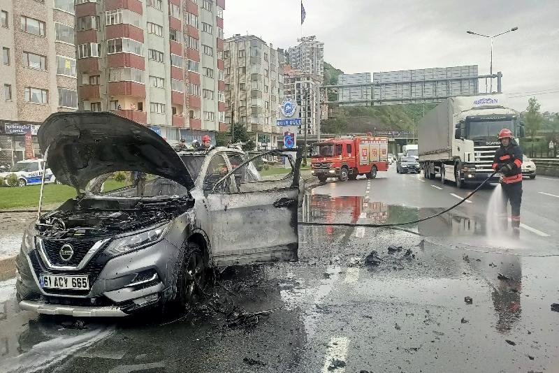 TRABZON (AA) – Trabzon'da seyir halinde alev alan otomobil kullanılamaz hale geldi.