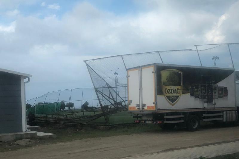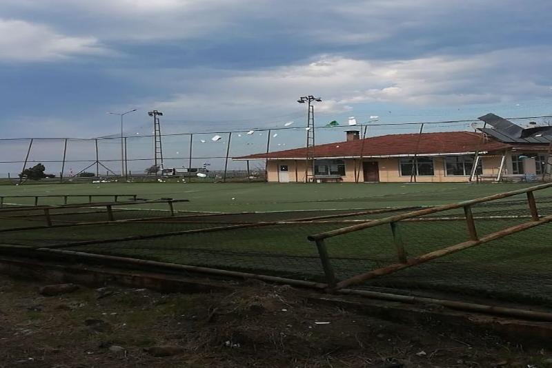 Vakfıkebir ilçesinde de şiddetli fırtına halı sahanın direklerinin yıkılmasına yol açtı.