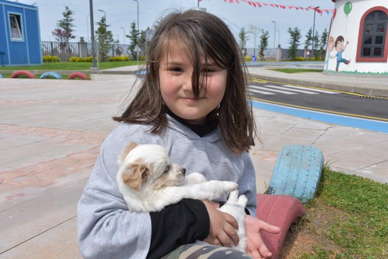 Büyükşehir Belediyesi vazifelilerinin de yakından ilgilendiği çocuklar, hayvan barınağından getirilen köpekleri severek, eğlenceli vakit geçirdi.