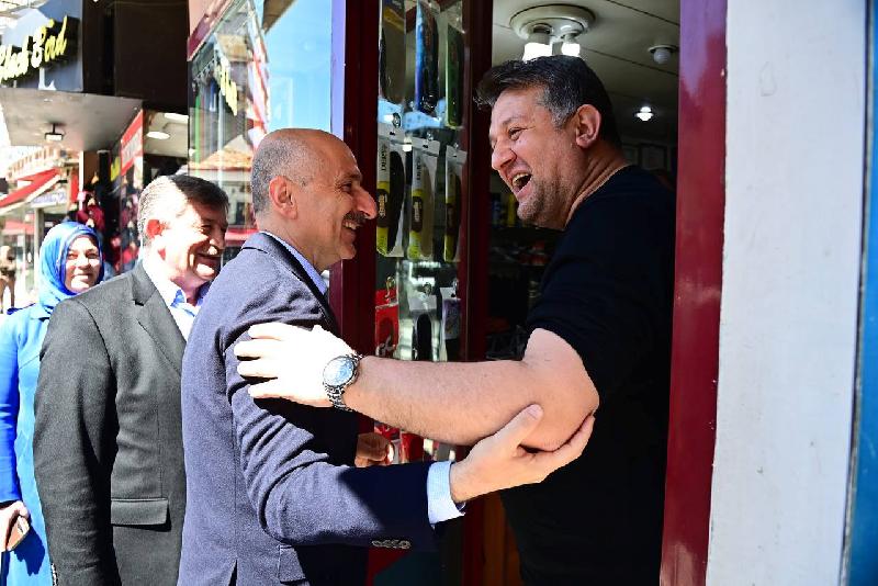 Kunduracılar Caddesi'nde esnaf ve vatandaşlarla bir ortaya gelen Karaismailoğlu, Değirmendere Büyük Sanayi Sitesi ve Bağ-Kur Sanayi Sitesi'ni ziyaret etti.