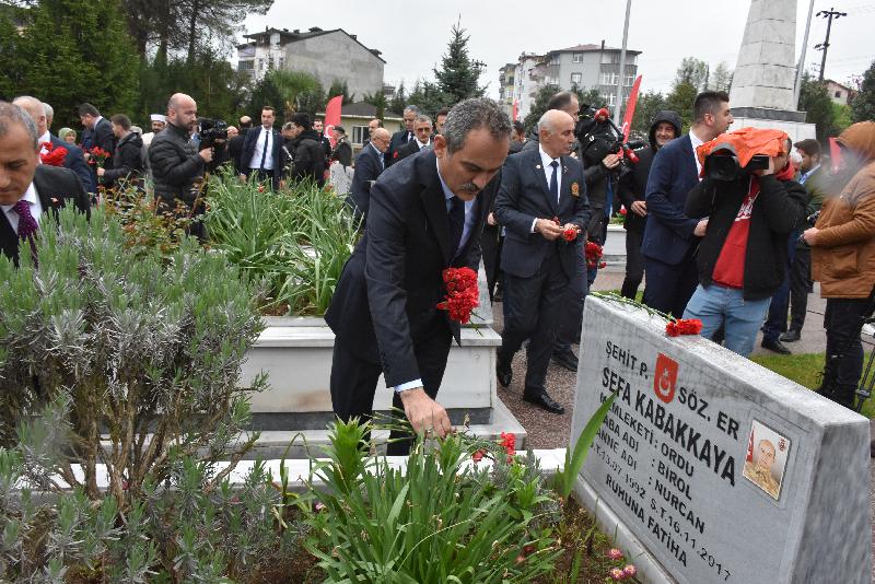 ORDU (AA) – Milli Eğitim Bakanı Mahmut Özer, Ordu şehitliğini ziyaret ederek, kabirlere karanfil bıraktı.
