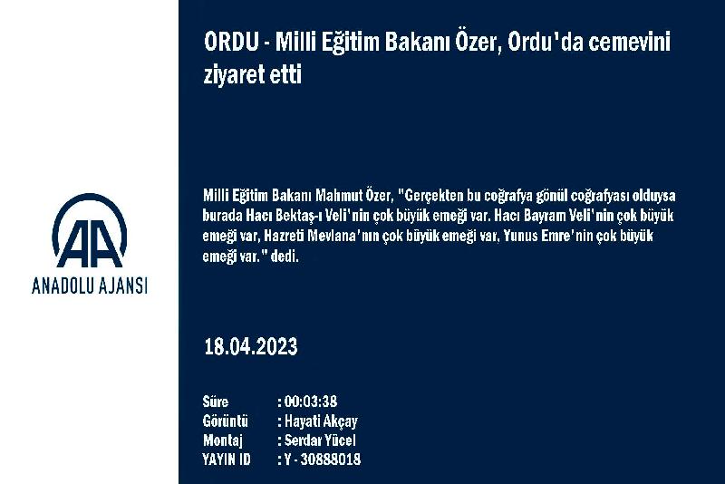 ORDU – 67aydinhaber – milli Eğitim Bakanı Mahmut Özer, “Gerçekten bu coğrafya gönül coğrafyası olduysa burada Hacı Bektaş-ı Veli’nin çok büyük emeği var. Hacı Bayram Veli’nin çok büyük emeği var, Hazreti Mevlana’nın çok büyük emeği var, Yunus Emre’nin çok büyük emeği var.” dedi.