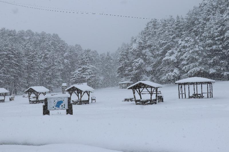 Bolu'nun doğal hoşluğuyla ünlü Abant Gölü Tabiat Parkı'nda da kar yağışı aralıklarla devam ediyor.