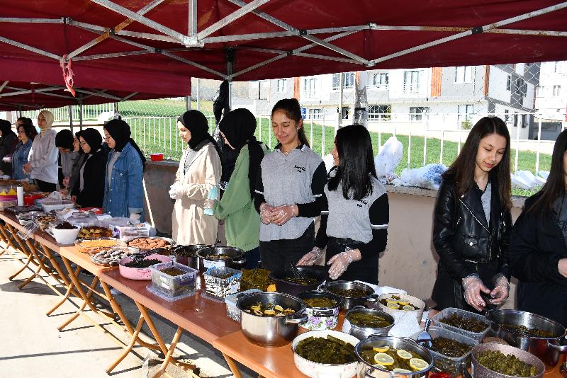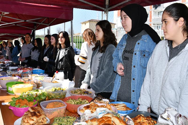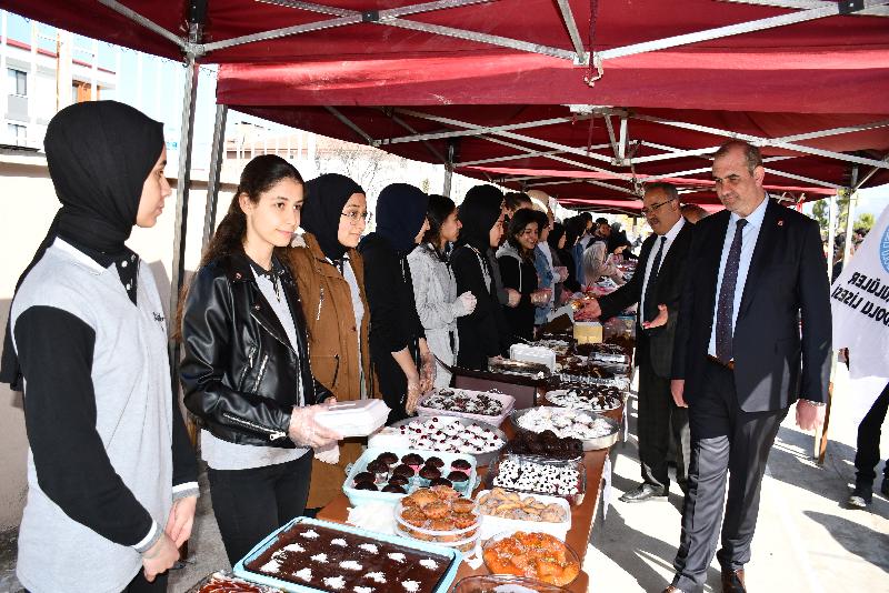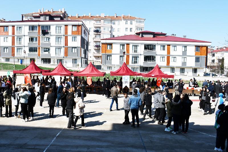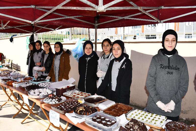 Evlerinde yaptıkları yiyecekleri okul bahçesinde satışa sunan öğrenciler, elde ettikleri geliri depremzedelere bağışlayacaklarını söz etti.