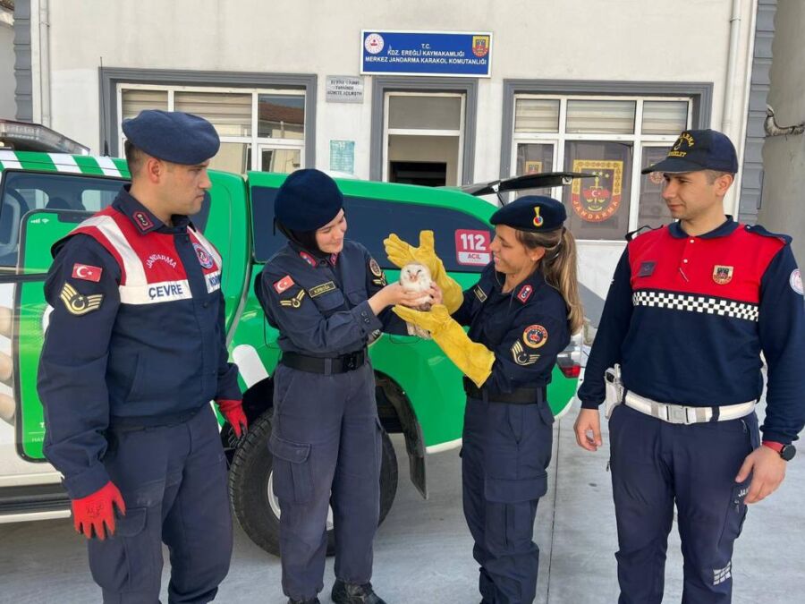 Zonguldak ili Kdz Ereğli ilçesinde 24.10.2023 günü icra edilen Önleyici Kolluk Devriyesi esnasında yol üzerinde yaralı baykuş yavrusu bulunmuştur.