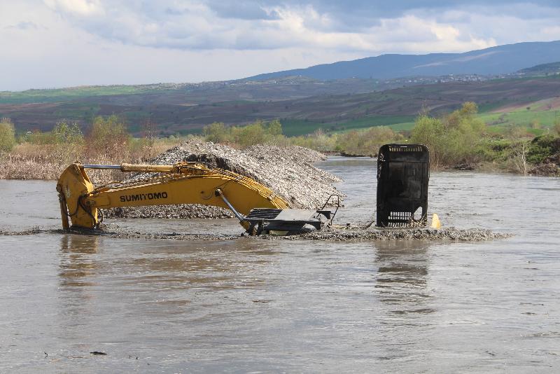 Bölgedeki hidroelektrik santralini işleten firma tarafından kiralanan ve Yeşilırmak'ta paklık çalışmasında kullanılan kepçe arızalandı. Operatör iş makinesini terk etti. Bir süre sonra ırmağın debisinin yükselmesi sonucu iş makinesi su altında kaldı.