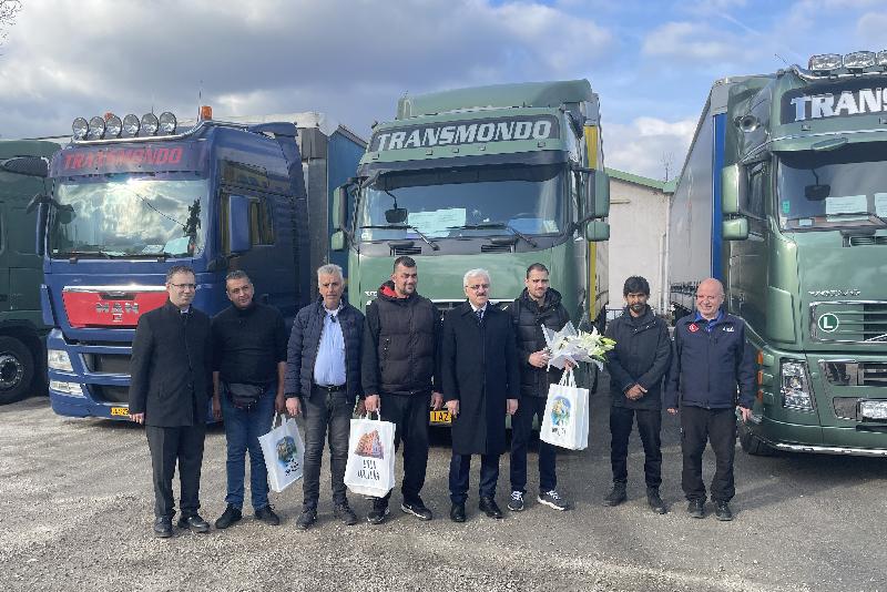 Türk konsolosluk yetkilileri koordinesinde Yunan halkı tarafından depremzedelere ulaştırılmak üzere toplanan besin, giysi, maske ve hijyen materyallerini taşıyan 5 tır, Bolu'ya geldi.